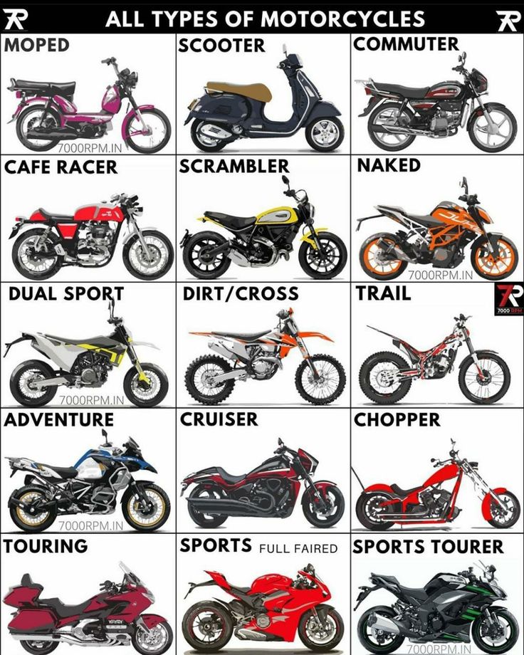 Hero Glamour/Hero HF Deluxe/Hero Passion Plus/Hero Passion Pro/Hero Splendor Plus/Honda Activa 5G/Honda CB Unicorn/Honda Dio/Bajaj CT 100/Bajaj Platina/Bajaj Pulsar 150/Bajaj Pulsar 200 ES/Bullet 350/Bullet 500/Enfield Classic 350/TVS Apache/TVS Jupiter/TVS XL 100/Sports Bike/Suzuki Access/Yamaha Fazer/KTM Duke